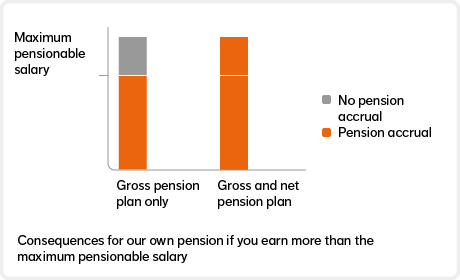If your salary is higher, you will not accrue pension on your salary above this amount through the regular (gross) pension scheme of your employer. The higher your salary, the greater the drop in income when you retire. And the more your surviving dependants will have to give up in the case of your death. This is due to the limit set by tax rules on pensionable salary. The government does, however, make it possible to accrue a pension on the salary above the threshold: with a net solution. For this we offer Pensioen Plus.