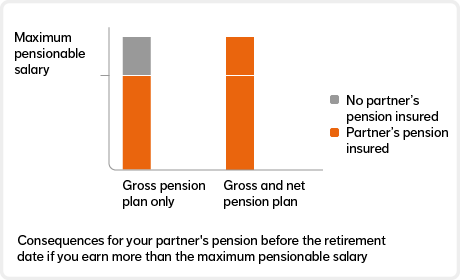 The images show the consequences for your partner’s pension and retirement pension if your salary exceeds the threshold.
