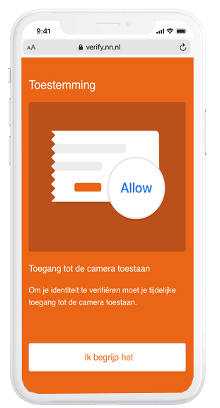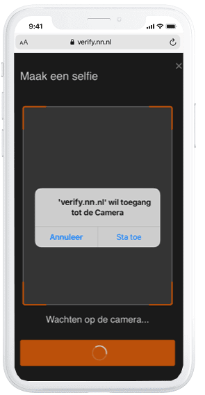 Sta toe dat de website ‘verify.nn.nl’ je camera gebruikt om een foto te maken van je gezicht.