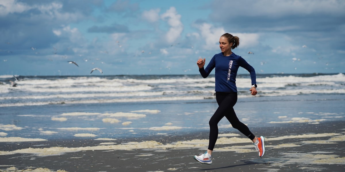 "Ik loop het liefst in de ochtend, voor mijn werk. Het is ongeveer vijfhonderd meter van mijn huis tot de duinen. Eenmaal daar laat ik alles los. Geen gepieker of gemaal meer, er ontstaat ruimte in mijn hoofd. Soms hoor ik de meeuwen door mijn podcast heen. Rennen is reflectief voor mij. Regelmatig stel ik mezelf tijdens het rennen vragen: hoe gaat het met me? Ben ik tevreden met de koers die ik nu vaar? Mijn batterij laadt altijd op. Mijn lichaam is weer sterk geworden. Wie had dat ooit gedacht?