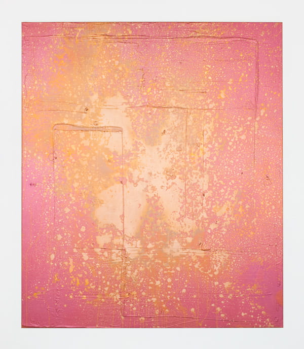 Beer on red fire iridescent, bronze pigment and primer gesso 170 x 200 cm