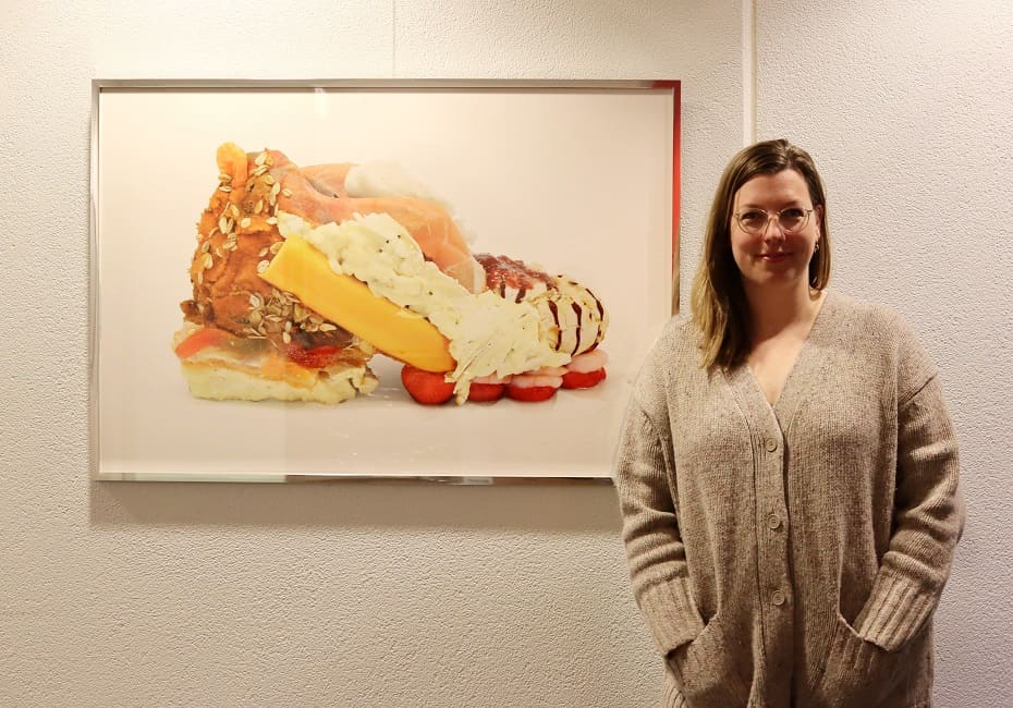 Gepke Koopmans: “Ik koos dit kunstwerk, omdat het me intrigeert: een close-up van eten gemodelleerd tot schoen. Ik heb zelf met beiden iets, dus dit werk heeft een bepaalde aantrekkingskracht op me. Maar vooral de gedachte achter het werk van Sander Wassink spreekt me aan. Hij maakt kunst van overgebleven materialen en wil daarmee laten zien hoe rijk en vol potentie die materialen nog zijn.”