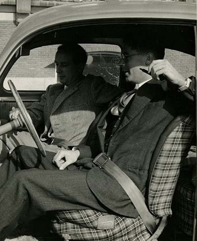Medewerkers tonen het gemak van veiligheidsgordels, 1965
