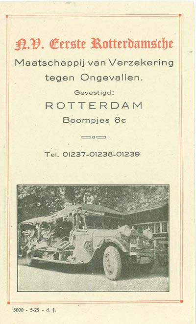 Folder autoverzekering, Eerste Rotterdamsche, 1929