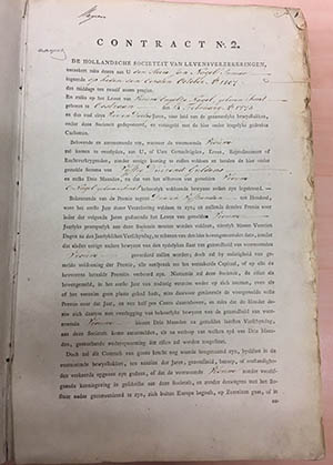 Document: Eerste levensverzekering afgesloten bij de Hollandsche Societeit in 1807, op het leven van Engeltje Nagel Smit.