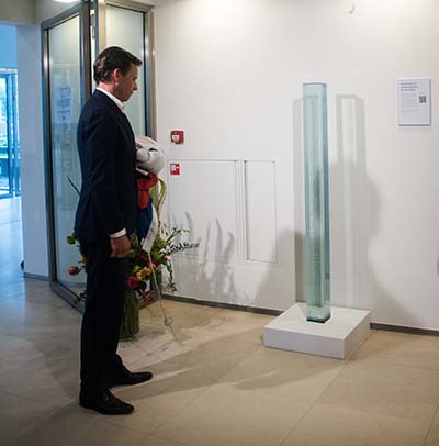 David Knibbe, CEO NN Group, onthult in 2020 de nieuwe gedenkzuil.