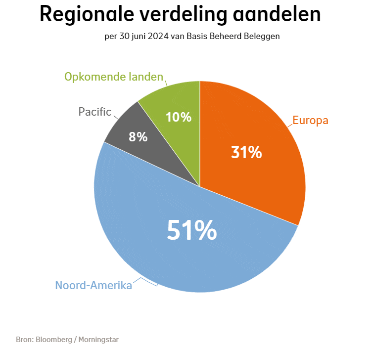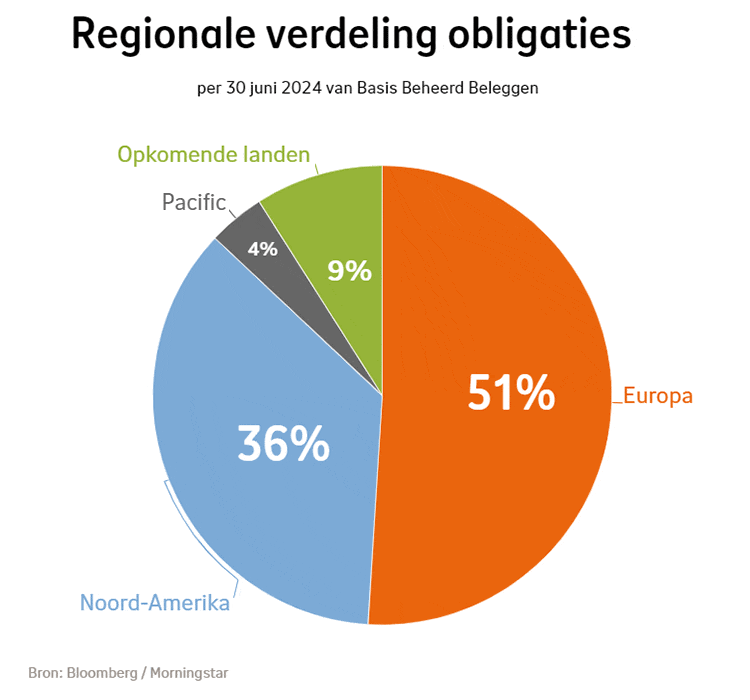 De verwachting is dat centrale banken de korte rente verder verlagen. Daardoor stegen de aandelenkoersen in de meeste regio’s. Onze beleggingen profiteerden daarvan. De Japanse aandelenbeurs leverde terrein in doordat de economie iets kromp terwijl de inflatie opliep. Hierdoor zagen we de aandelenkoersen in de Pacific iets dalen. Het deel van onze beleggingen in de Pacific is maar klein.