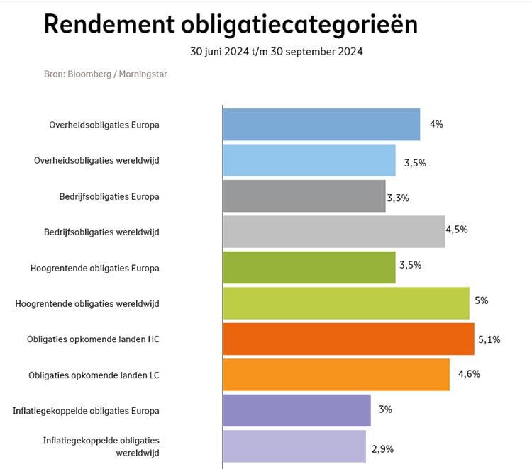 De daling van de kapitaalmarktrentes in Europa en in de Verenigde Staten was positief voor veel obligatiecategorieën.