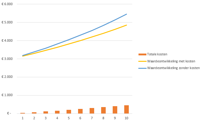 | Subtotaal fondskosten | 0,70% (gemiddeld) | € 348,- |