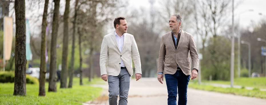 Pascal: “Dat lijkt mij een goed idee, Bjorn. En van jou kan ik leren meer afstand te nemen van werk. Op jouw leeftijd was ik nog veel onrustiger op werkgebied. Al was het toen ook een andere markt. Nu is de concurrentie minder groot, er is genoeg werk voor iedereen. En dat zal de komende jaren zeker zo blijven.”