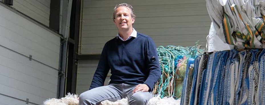 In 2011 richtte hij zijn eerste eigen bedrijf op, gespecialiseerd in het verbeteren van die vezels. Na acht jaar verkocht hij de onderneming. Toen kwam corona. “Ik had veel tijd over en ging me verdiepen in de circulaire economie”, vertelt Marcel. “Zo leerde ik bijvoorbeeld dat er jaarlijks duizenden kilo’s visnetten in het water belanden. Als we zo doorgaan, zwemt er over twintig jaar meer plastic afval in de zee dan vissen.”